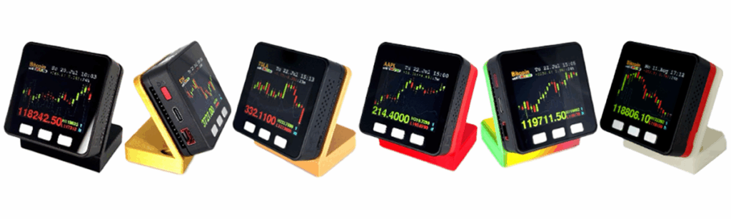 Setting up your device is quick and simple. The walkthrough video below shows the full process from connecting your device to Wi-Fi, to adding your first stocks and crypto pairs, and viewing them live once connected.